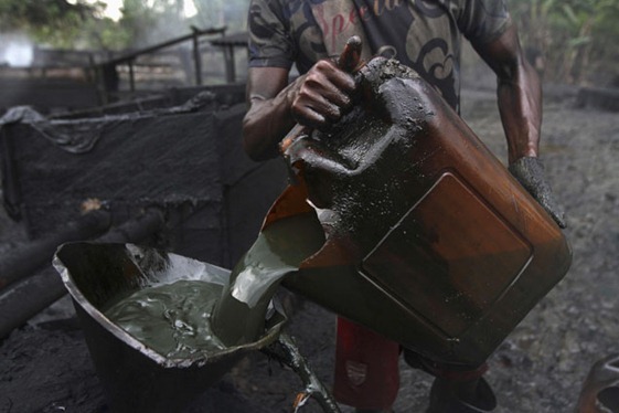 As companhias petrolíferas e o governo queixam-se de perdas de mais de mil milhões de dólares por mês resultantes do roubo de petróleo. Os prevaricadores dizem por sua vez que o petróleo pertence a todos os nigerianos e é o único meio de sobrevivência de que dispõem.Tudo terá começado assim: anos atrás Emmanuel um produtor de vinho da palma, conseguiu adaptar a sua técnica de produção de vinho a algo mais rentável – refinar pequenas quantidades de resíduos de petróleo, através de tambores aquecidos em fogo de lenha. Desde então Emmanuel foi obtendo petróleo roubado com a ajuda de seus "rapazes" e durante anos tem partilhado o segredo com amigos. Nos últimos dois anos as milícias do Delta do Níger declararam o cessar-fogo, mas o roubo de petróleo – conhecido localmente como bunker, um termo ligado a exploração do carvão – ganhou projecção. Alguns rios e enseadas tornaram-se num virtual mercado negro de petróleo e auto-estradas de combustíveis. Mulheres e crianças dirigem canoas cheias de bidões de petróleo para serem vendidos nos mercados. Miúdos adolescentes manobram grandes barcos de madeira entre as refinarias, carregadas de petróleo roubado. Muitos dos donos dessas refinarias à beira-rio não gostam quando são questionados sobre a proveniência do petróleo que usam. Respondem dizendo que se o governo os tivesse dado emprego, não teriam dedicado a um tal negócio. "Nós apenas consideramos isto de ofensa. Mas não problemas. Se o governo federal instalasse aqui as empresas ninguém estaria fazendo isso. É um trabalho sujo, de uma maneira ou outra."